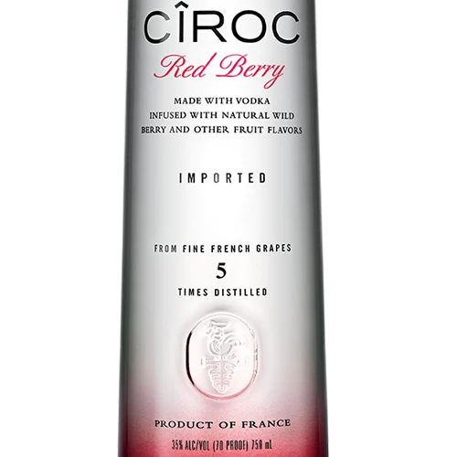 CÎROC Red Berry is one of the first flavor-infused expressions of CÎROC. This Ultra-Premium Vodka is distilled five times then infused with raspberry, natural strawberry flavors, yielding a smooth spirit. The result is a balanced, luscious, berry-infused vodka.