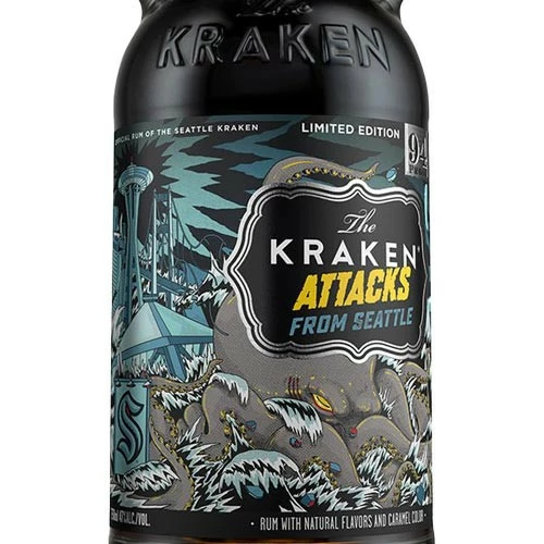 Released in 2021, The Kraken Attacks is a limited-edition collection of spiced rums. This time, the Kraken found its home beneath the Tacoma Narrows Bridge from where he attacks anyone who wants to mess with Seattle. Blended with natural flavors and caramel color, The Kraken Attacks from Seattle is bottled at 94 proof.